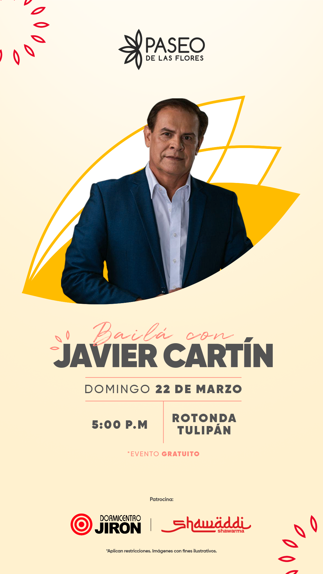 ✨ ¡Vení a disfrutar una tarde llena de ritmo! 💃🕺Este domingo 22 de marzo, bailá con Javier Cartín en Paseo de las Flores. 📍 Te esperamos en la Rotonda Tulipán⏰ 5:00 p.m.🎟️ Evento gratuito ¡No te lo perdás, traé a tus amigos y pasala increíble! 🌟